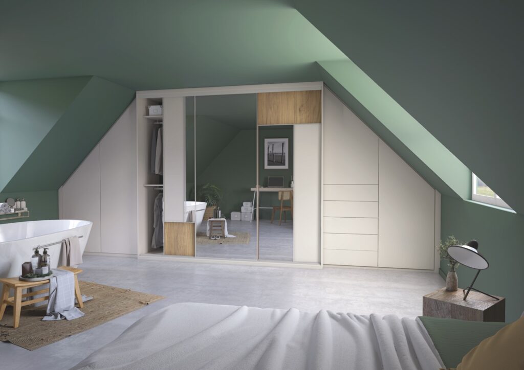 - Côté nuit : un pan de mur sauge dans une chambre ou un bureau permettra de laisser la sérénité flotter dans l’air. Optez pour des accessoires en rotin et du linge de lit aérien.