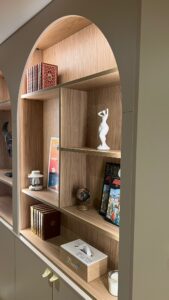 L’intégration des formes courbes permet d’adoucir les volumes existants, de fluidifier les circulations et de proposer une lecture plus harmonieuse des espaces. Les pièces deviennent moins segmentées, plus naturelles, favorisant une continuité visuelle et fonctionnelle.